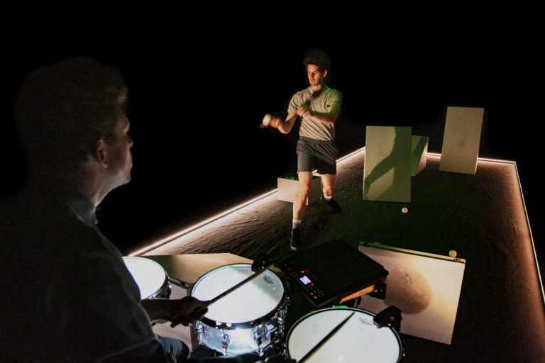 ‘Man Strikes Back’ is een muzikale choreografie waarin jongleur Stijn Grupping en drummer Frederik Meulyzer de controle proberen te houden over vijf eigenzinnige houten driehoeken. Door botsballen ritmisch heen en weer te kaatsen, ontstaat een spannend evenwicht tussen precisie en snelheid. In dit kwetsbare samenspel zijn de objecten en performers elkaars gelijke: elke beweging is cruciaal voor het slagen van de compositie. ‘Man Strikes Back’ is een muzikale performance van mens en robot voor mens en robot vanaf 6 jaar.