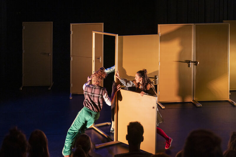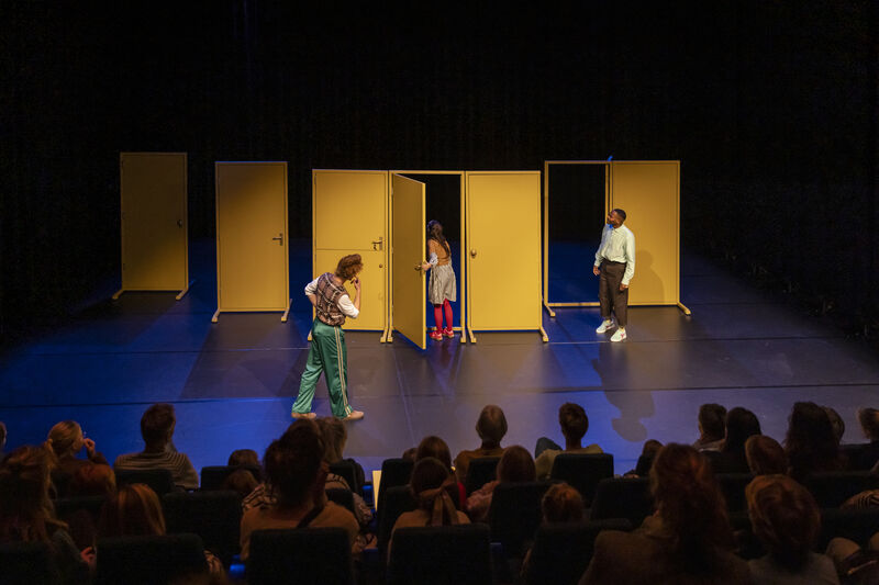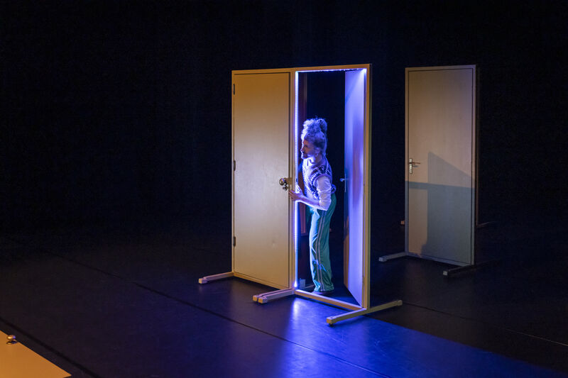 Drie verschillende mensen dwalen door een landschap van deuren, waarachter steeds een andere wereld schuil gaat. Maar hoe vaak ze ook weggaan, het lijkt wel of ze altjd weer bij elkaar en het publiek uitkomen.
